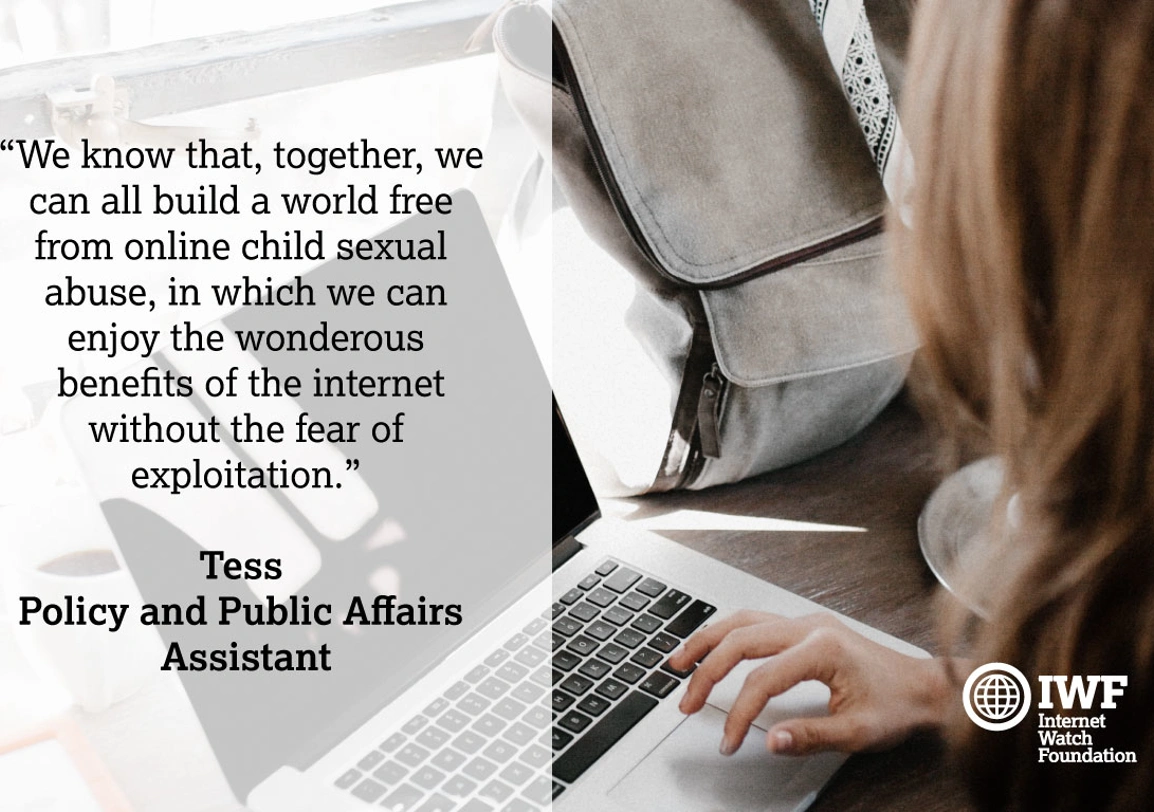 In the policy and public affairs team at the Internet Watch Foundation, we fight to keep victims of child sexual abuse at the heart of the debate, and at the top of political agenda. As technology develops so quickly, it is crucial that we have the infrastructure in place to allow everyone to enjoy the benefits it brings and protect our most vulnerable from exploitation.