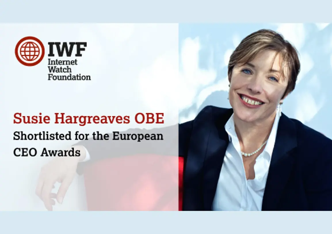 The Internet Watch Foundation’s CEO, Susie Hargreaves OBE, has made it to the top four finalists in the prestigious European CEO Awards.