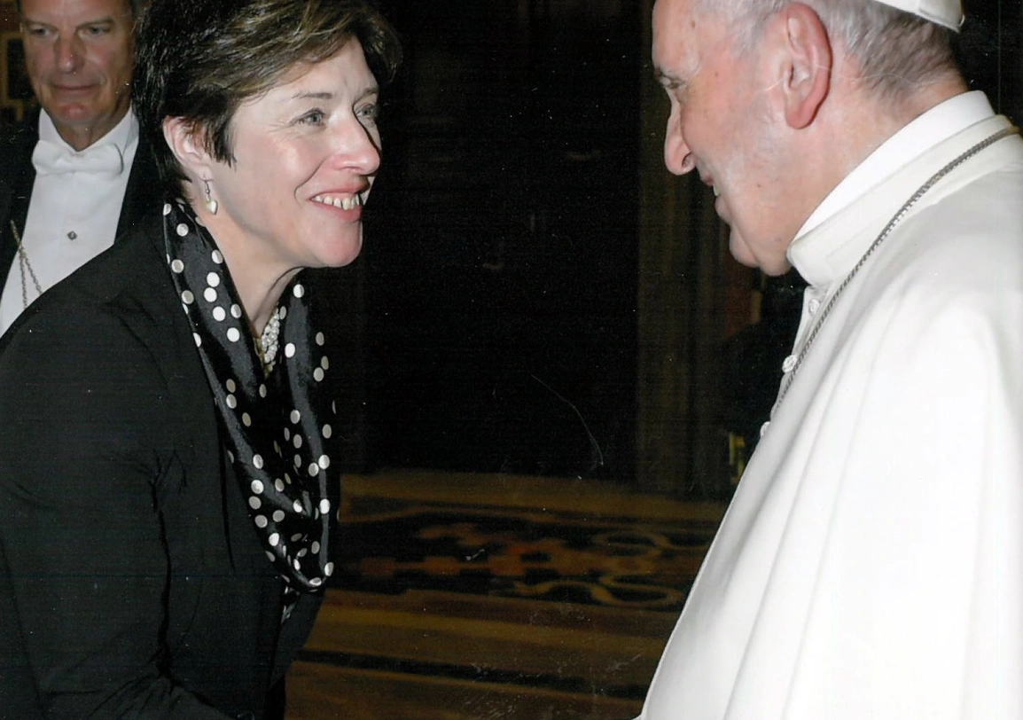 Susie Hargreaves OBE, IWF CEO, meeting Pope Francis at the Vatican while attending the ‘Child Dignity in the Digital World’ Congress in 2017.
